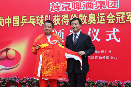 2012年4月26日, 燕京啤酒赞助国家乒乓球队签约新闻发布会在京举行,北京燕京啤酒集团公司成为中国乒协官方合作伙伴,全力支持中国乒乓健儿出征伦敦。